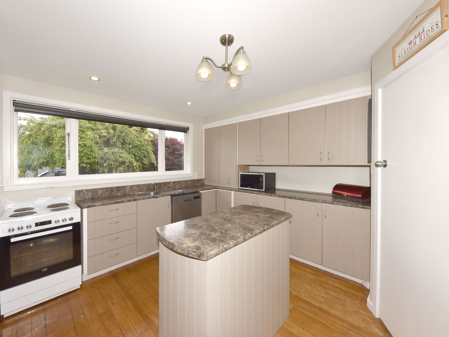 Enjoy entertaining friends and family on the spacious, sun-drenched west-facing deck. With easy access from the dining area, the deck seamlessly connects to the heart of the home, the kitchen. The kitchen features generous bench space and all the modern conveniences, ensuring it can keep up with the busy pace of family living. The large lounge is filled with natural light thanks to its north-facing windows, allowing you to keep an eye on the deck and outdoor activities. A compliant log burner keeps the entire home warm and cosy during chilly days along with the heat transfer to the bedrooms, creating a comfortable atmosphere for everyone.